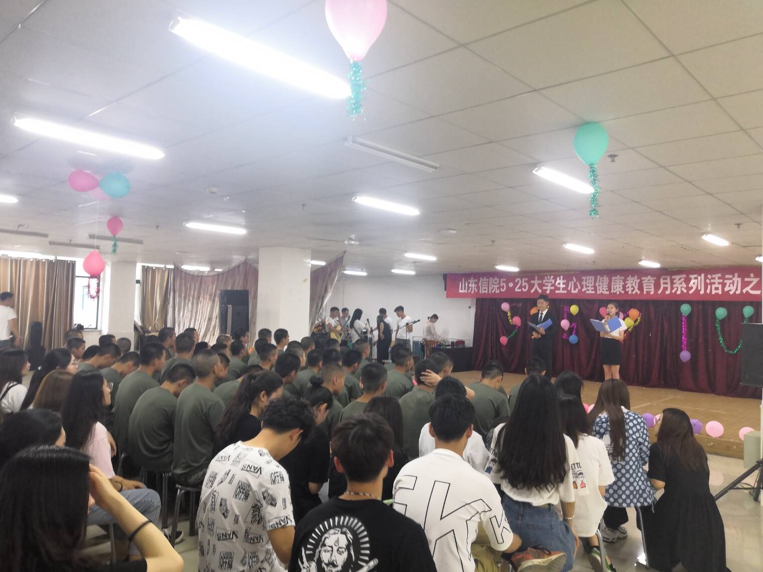 为营造良好的校园心理文化氛围,提升大学生心理健康素质,丰富大学生的课余文化生活。我院学生工作处举办了一系列心理健康活动,心理健康晚会是大学生心理健康节系列活动中的重要活动之一,各系同学们积极参加。