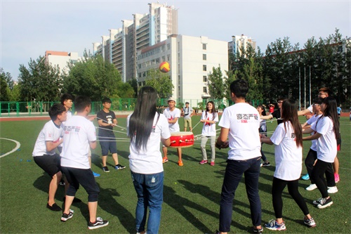 5月20日下午,由学生工作处团委组织举办的户外心理趣味运动比赛在田径场举行。本次趣味运动比赛共有来自各系及士官生7支代表队参加。活动分团队建设及团队竞赛两个环节。团队建设环节中,各系代表队通过队牌、队名、口号、团队操、自我介绍等进行团队展示,增进了队员之间的了解,增强了团队的凝聚力。团队竞赛环节包括无敌风火轮、给力伙伴、气球大作战、同心鼓四个比赛项目。在“给力伙伴”的赛场,队员们蓄势待发,随着发令枪声响起,同学们形如机器人一般,十人一组,喊着整齐的口号,团结共进。在“同心鼓”比赛项目现场,十六名同学围站在鼓的四周,默契配合,通过一起拉动绳子,带动鼓上的排球弹跳。一旁同学们的加油声此起彼伏,为运动员们呐喊助威。精心选择的活动,集趣味性、教育性、运动性于一体,不仅活跃了同学们的身心,释放了压力,更让同学们体会到了团队合作的重要性,深刻地理解了个人与集体牢不可分的亲密关系。
