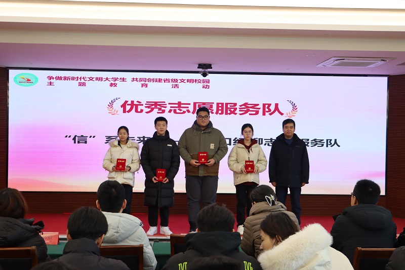 会议中,武洪萍对“争做新时代文明大学生 共同创建省级文明校园”主题教育活动进行总结,肯定了本学期师生在文明班级建设、文体活动举办、志愿服务组织等方面共同做出的努力,并对师生下一步的学习、工作和生活提出新的希望和要求。根据本学期各班级、集体、个人综合表现情况,在会议上颁发了文明班级、文明教室、文明宿舍、优秀社团、优秀志愿服务队、优秀志愿者、优秀校园文体活动项目、文明校园创建先进个人、勤俭节约标兵、校园主人翁、劳动之星、体育之星、诚实守信之星及艺术之星等14个奖项。